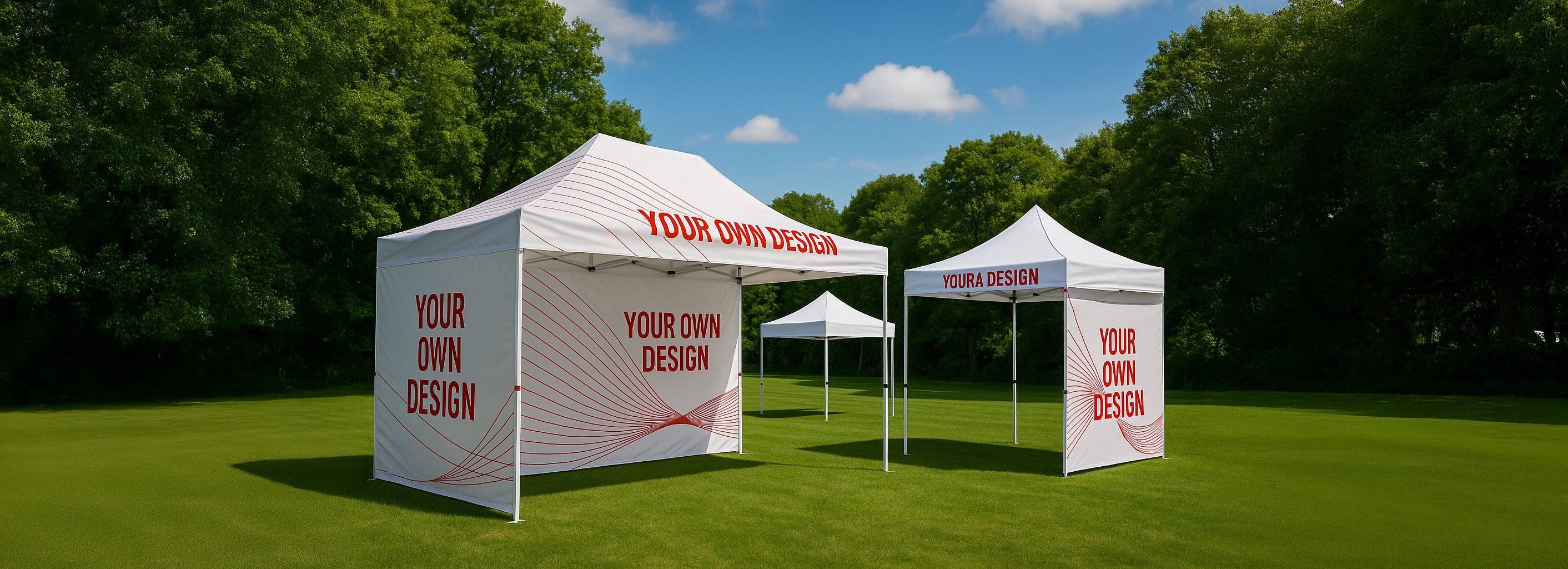 I gazebo pubblicitari possono essere utilizzati come stand in occasione di fiere ed eventi, essendo uno dei formati pubblicitari di maggior impatto visivo.
