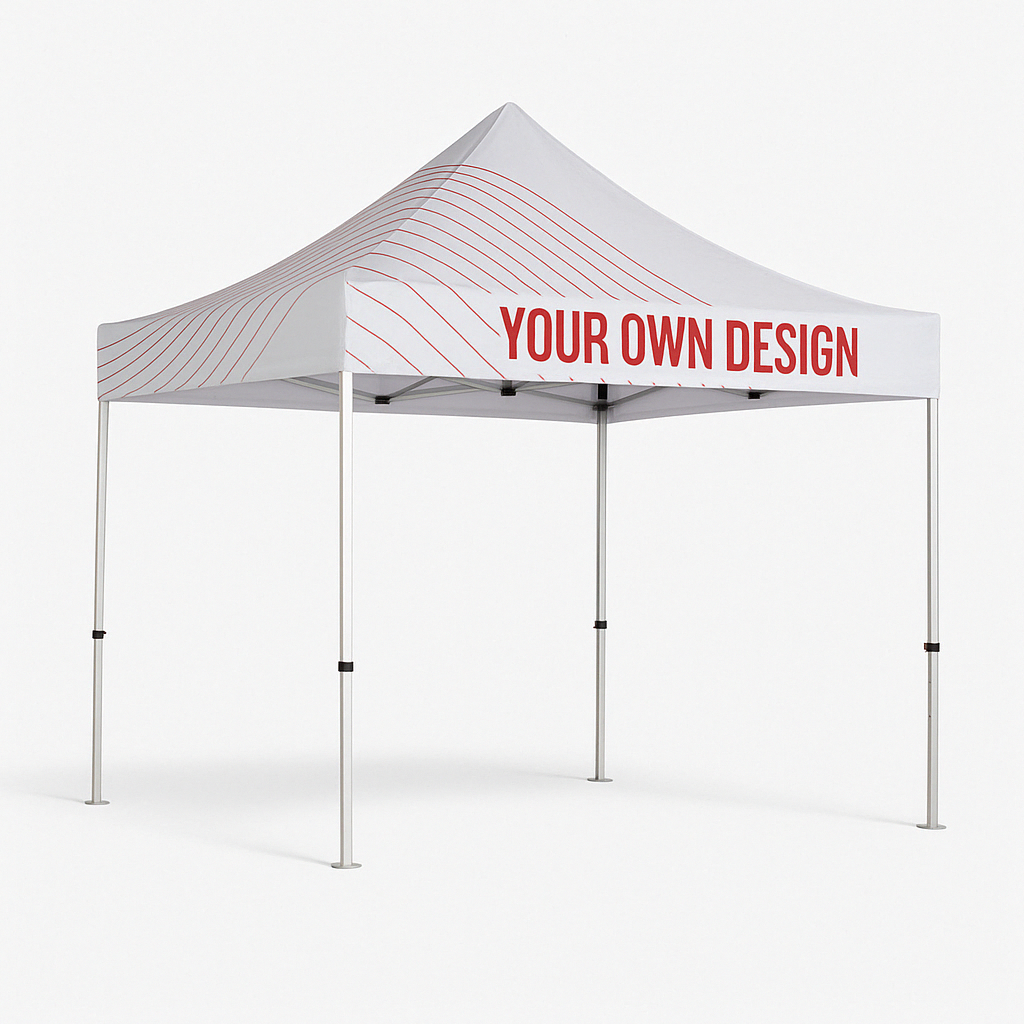 Tendoni 3x3 metri. Il design dei tessuti dei nostri gazebo può essere personalizzato al 100% sulla parte esterna del gazebo. È possibile disegnare il tetto, le quattro gonne laterali e le quattro eventuali pareti (vendute separatamente) con colori o immagini a scelta del cliente. In questo modo è possibile riutilizzare la struttura e cambiare il rivestimento in tessuto per altre occasioni. L'intera struttura del gazebo è impermeabile ed è progettata per essere ripiegata in un piccolo volume per essere riposta facilmente.